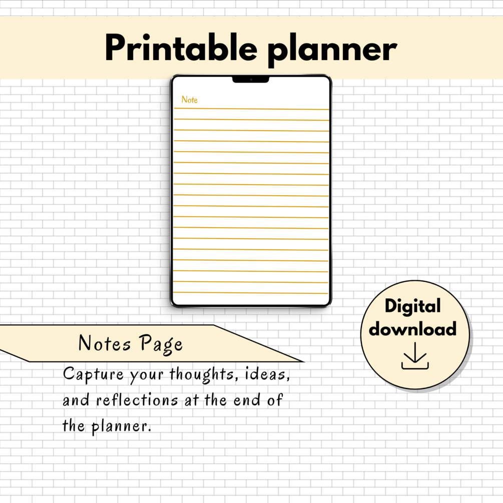 - Notes Page: A dedicated notes section for capturing thoughts, ideas, and reflections.