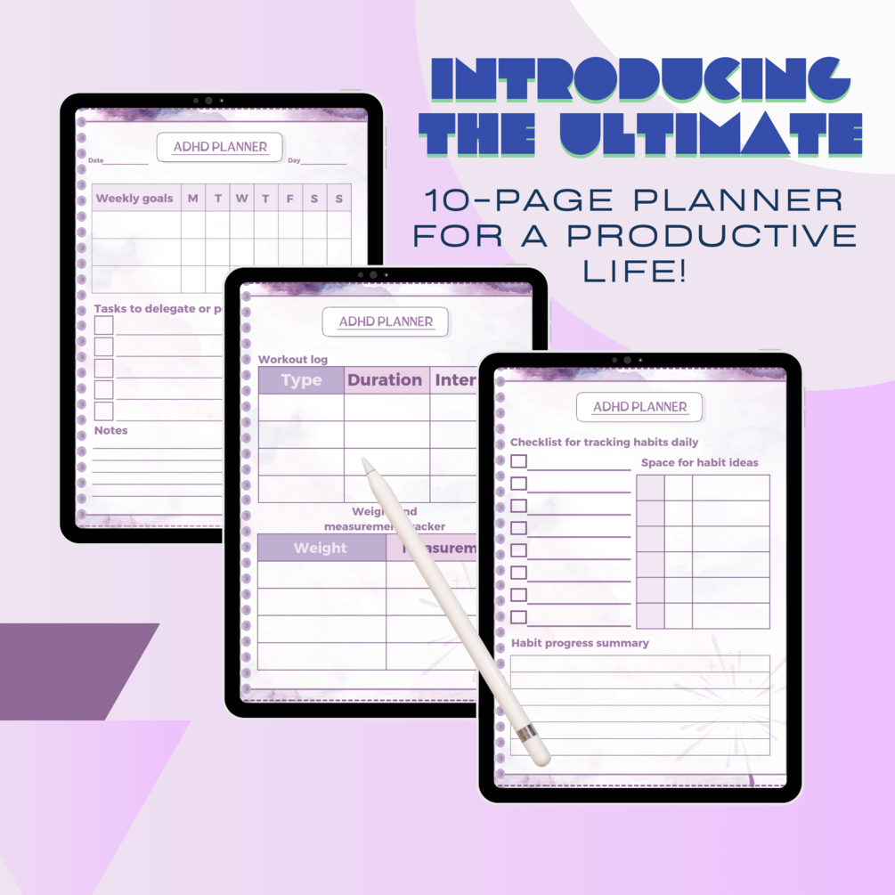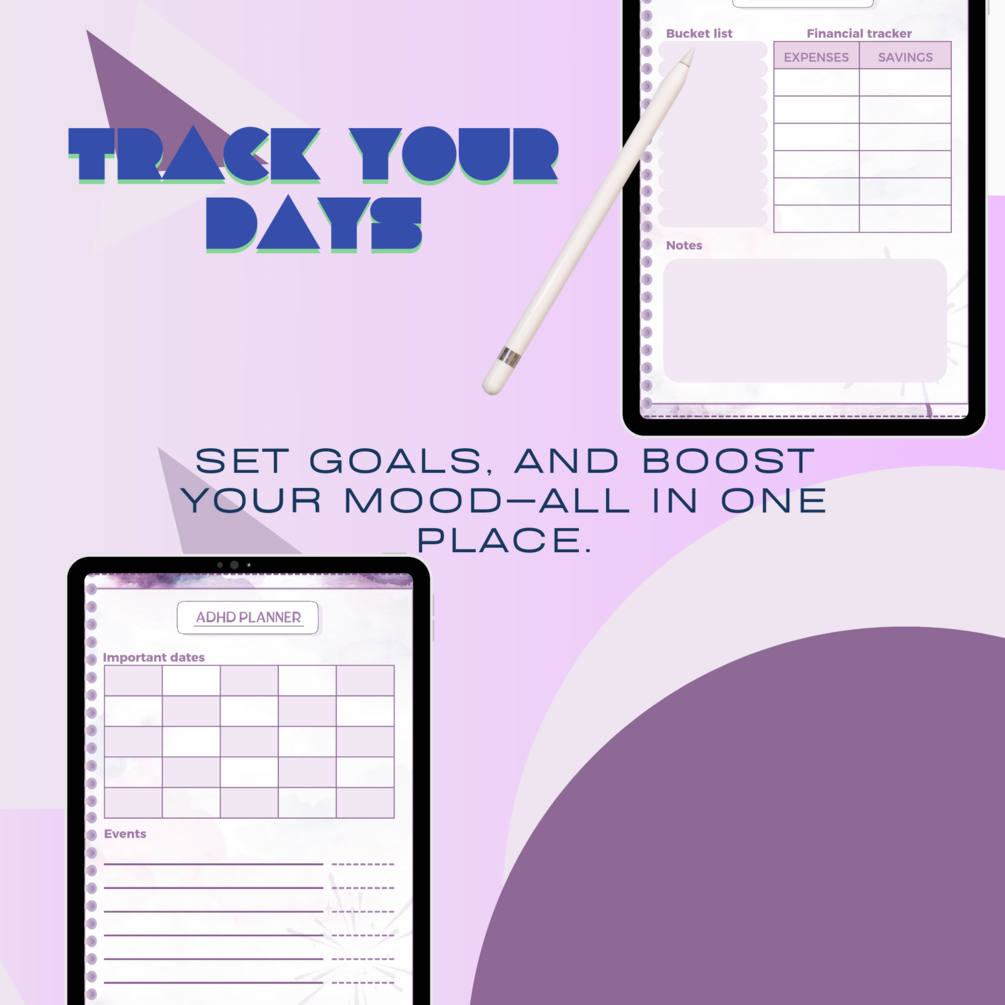 Struggling to stay organized? This ADHD-friendly digital planner is designed to help you manage your day, track your goals, and boost productivity—all in one place! With sections for daily schedules, weekly goals, mood tracking, and more, it’s perfect for staying focused and achieving balance.