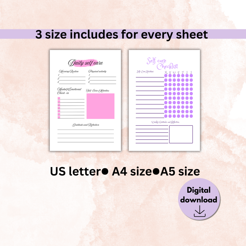 - Perfect for tracking your goals, tasks, and self-care routines in a customizable format.
