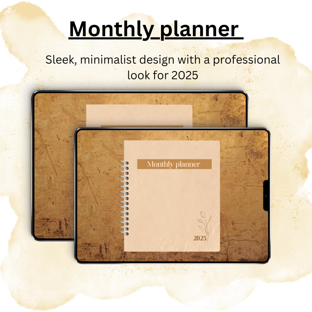 - 12 Monthly Pages (for 2025): Plan each month in detail with dedicated pages for January through December 2025.